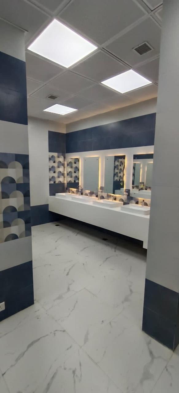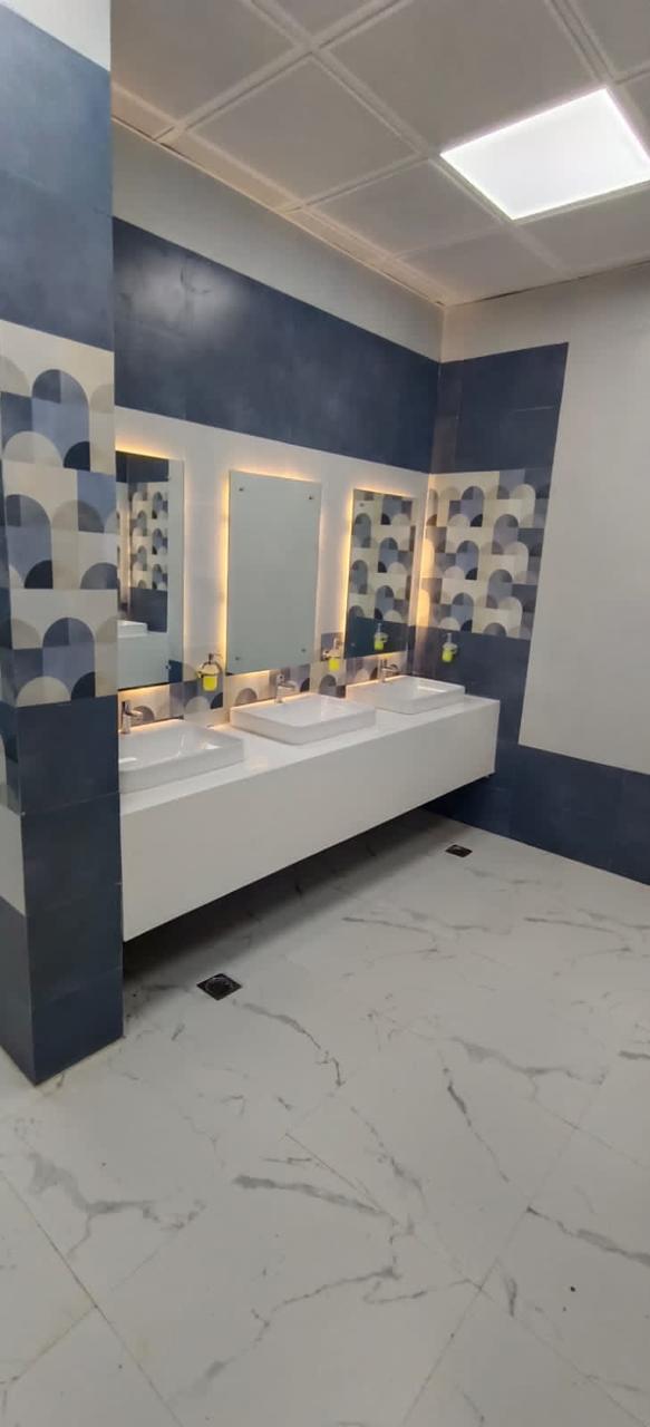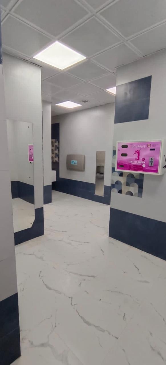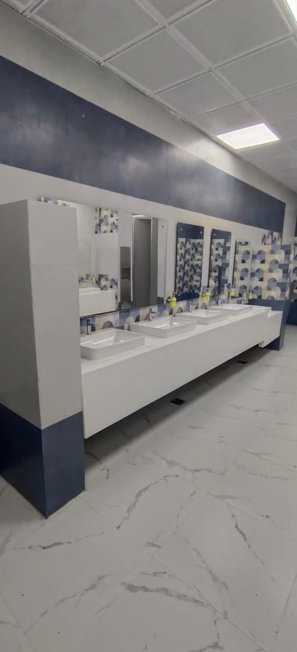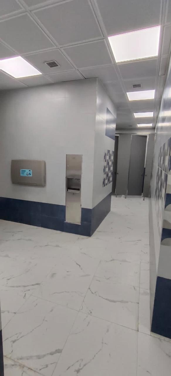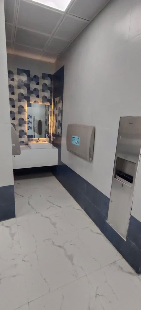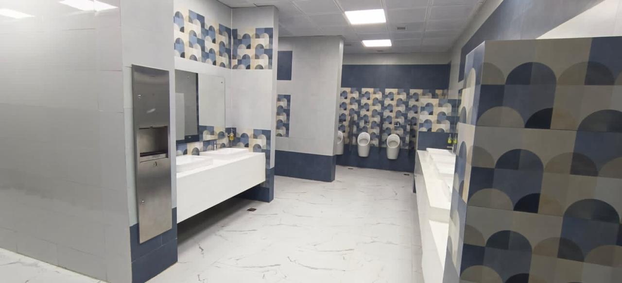 The false ceiling system was upgraded with fire-retardant panels integrated seamlessly with lighting, HVAC, and safety systems to improve durability and visual appeal. The RR12 toilet block underwent complete modernization, including civil modifications, new sanitary fixtures, upgraded plumbing and electrical systems, and high-durability finishes to enhance hygiene and usability. Additionally, premium carpet flooring was installed to improve acoustic performance, comfort, and overall ambience.
